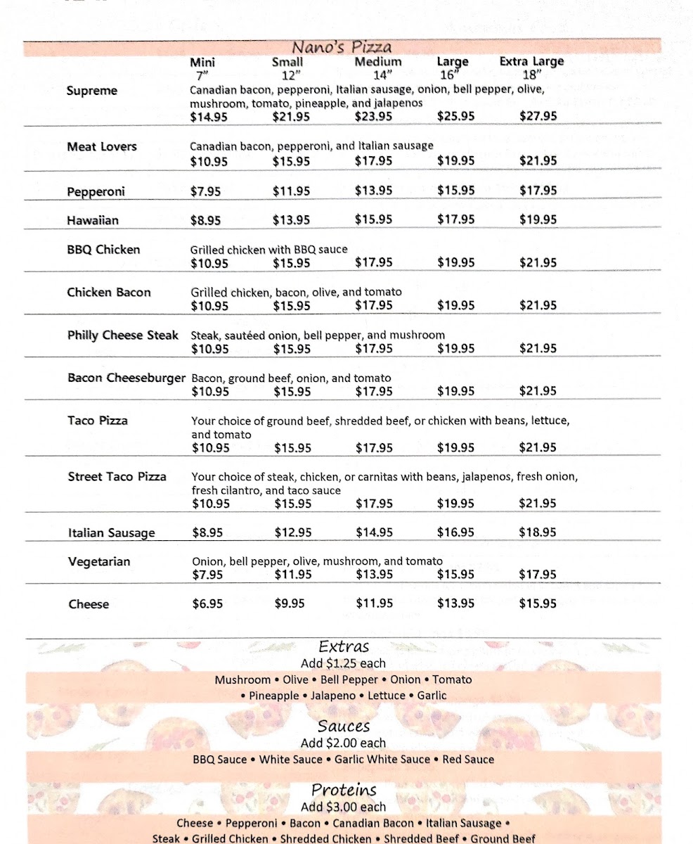 Welcome to Nano's Mexican Restaurant, a delightful culinary gem nestled in Glendale, Oregon. Offering a vibrant selection of flavorful dishes, Nano's is your go-to destination for authentic Mexican cuisine. Indulge in their beloved Mix Fajitas and Shrimp Fajitas, both priced at $13.95, or enjoy the mouthwatering Vegetarian Nachos that have garnered rave reviews. With a Burrito Dinner starting at just $8.95 and tantalizing Steak Quesadillas at $8.95, there’s something for everyone. Patrons rave about the homemade salsa and spot-on chips; try them alongside their famous Garlic Shrimp for a truly memorable dining experience.